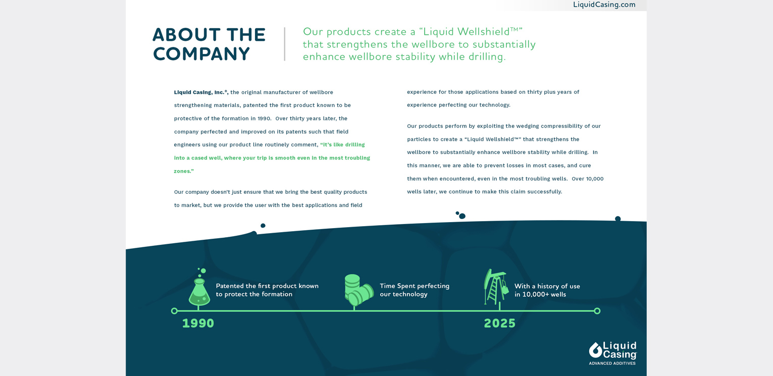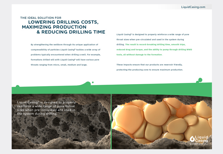 Liquid Casing, Inc., the original inventor of Wellbore Strengthening Materials (WSM), entrusted IMMIX Productions to reimagine its legacy marketing pamphlet into a dynamic, visually compelling digital brochure.