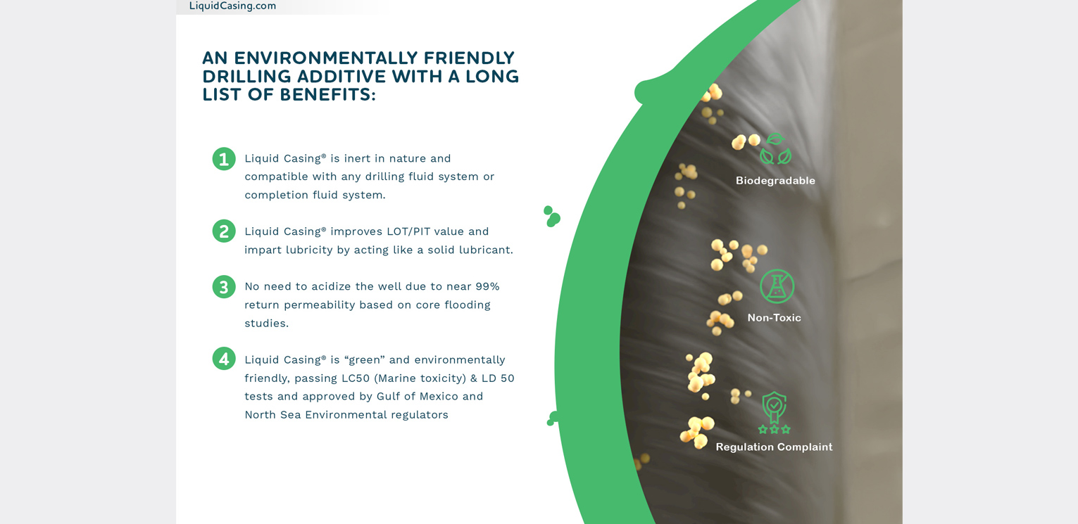 Founded on innovation, Liquid Casing, Inc. patented the first formation strengthening product in 1990 and has since become a trusted global provider of wellbore stability solutions. With over 10,000 wells drilled using their product line, Liquid Casing® is renowned for creating smoother drilling experiences—often described by field engineers as “like drilling into a cased well.”